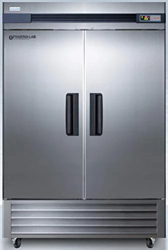 A 46 cu.ft 2-door upright pharmacy all-freezer with French door swing, intelligent microprocessor digital temperature controller, and stainless steel design.